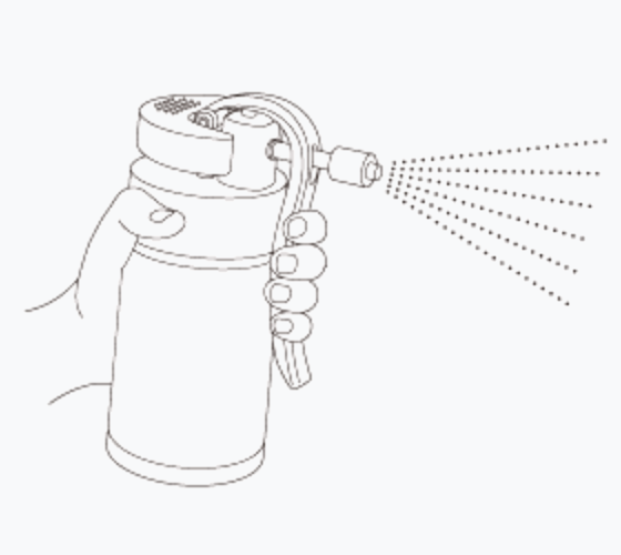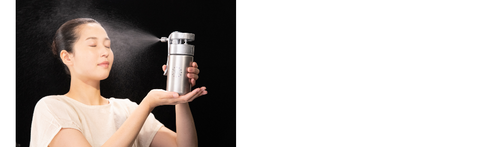 「ミラブルケア」は電気を使わず圧縮空気のチカラでスプレーできるので、場所を問わずいつでもどこでも使用できます。