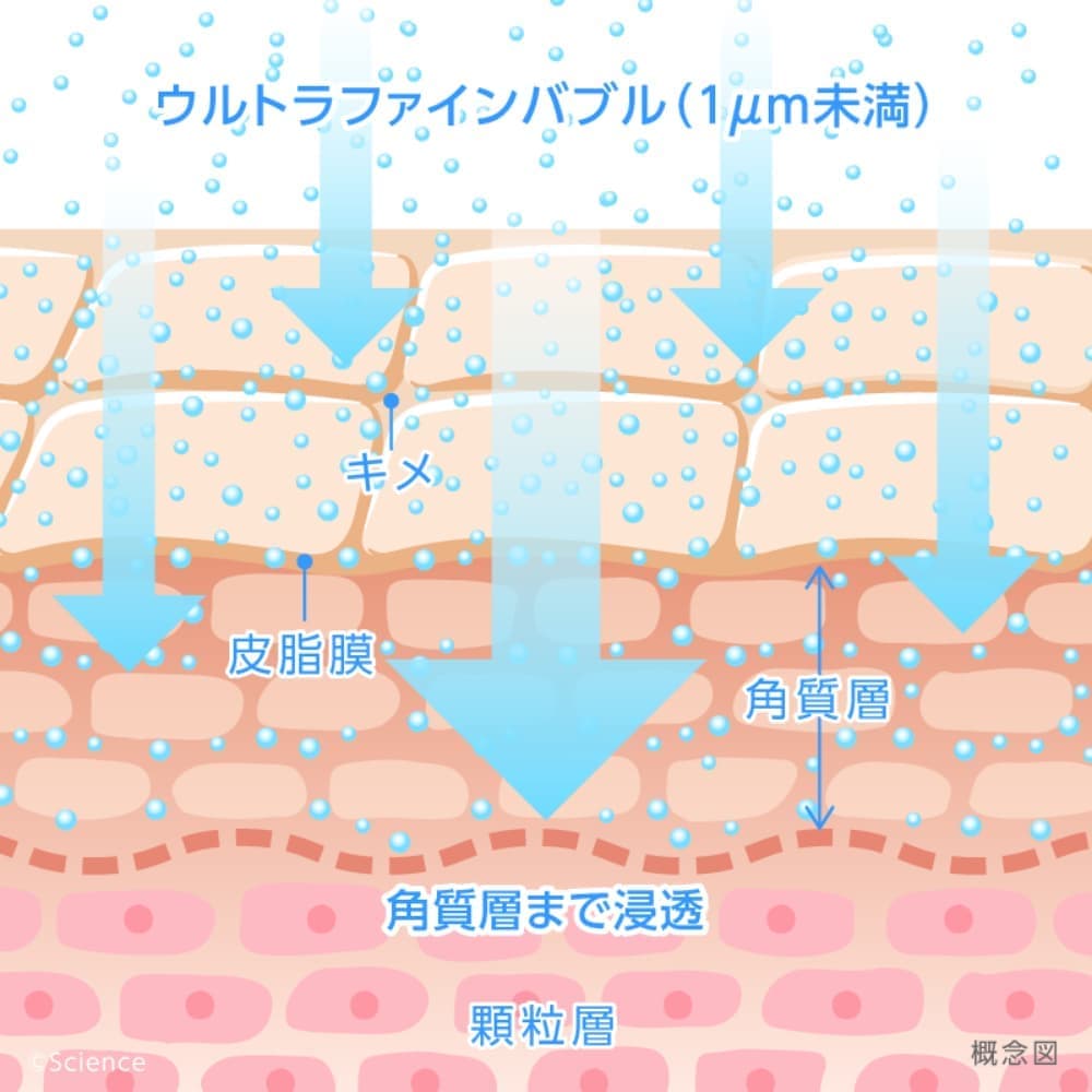 毛穴やキメよりも小さなウルトラファインバブルがお肌の奥(角質層)まで届きます。