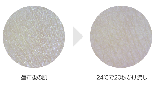 1ccあたり約2000万個のウルトラファインバブルで隅々まで汚れを洗い流すので、ファンデーションを使った洗浄実験でも、毛穴の細かいところまでウルトラファインバブルが入り込み、汚れを吸着してキレイに落としていることがわかります。
