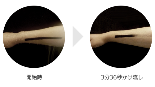 水温:37℃/室温:20℃/吐出面より測定対象を30cm離して水流を30秒あてた後、肌の表面温度を測定。平均値3.6倍の温度上昇という結果。株式会社サイエンス調べ。