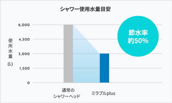 ※ストレート1:ミスト2として計算。水圧によっては節水率が変わる場合があります。