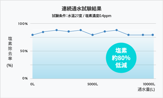 脱塩素量及び交換時期(最長3ヶ月を目安)は使用条件により異なります。